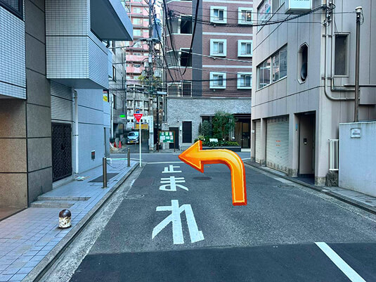交差点を渡って30mほどでT字路になりますので、左折します。